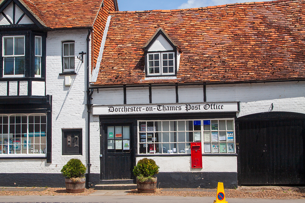 Dick and I sent off down the Thames towards Oxford. We had never been through a lock before, but fortunately the Thames locks are operated by the lockkeepers, so it was a relatively quick learning curve. We were told that we could tie up anywhere on the riverbank that did not specifically say otherwise. We decided to head towards the town of Dorchester-on-Thames for our first night’s stop. The guide book suggested that we could follow the River Thame most of the way to the town. We found the place to turn into the Thame, but immediately discovered that it was completely unnavigable. Looking again at the book, that I still have, I see that it says the Thame is navigable for “small craft”. Why we thought we were a small craft escapes me. We spent far too much time fiddling around trying to get up the river without running aground, and then we had to find a suitable place on the bank of the Thames to tie up. That accomplished, we set off along a narrow footpath and eventually arrived in the town. It was (still is) a very pretty and historic town, with a picturesque church, medieval buildings, and a wonderful old Inn called The George Hotel. The coaching inn was built in 1495, and still retains many features including oak beams and inglenook fireplaces.