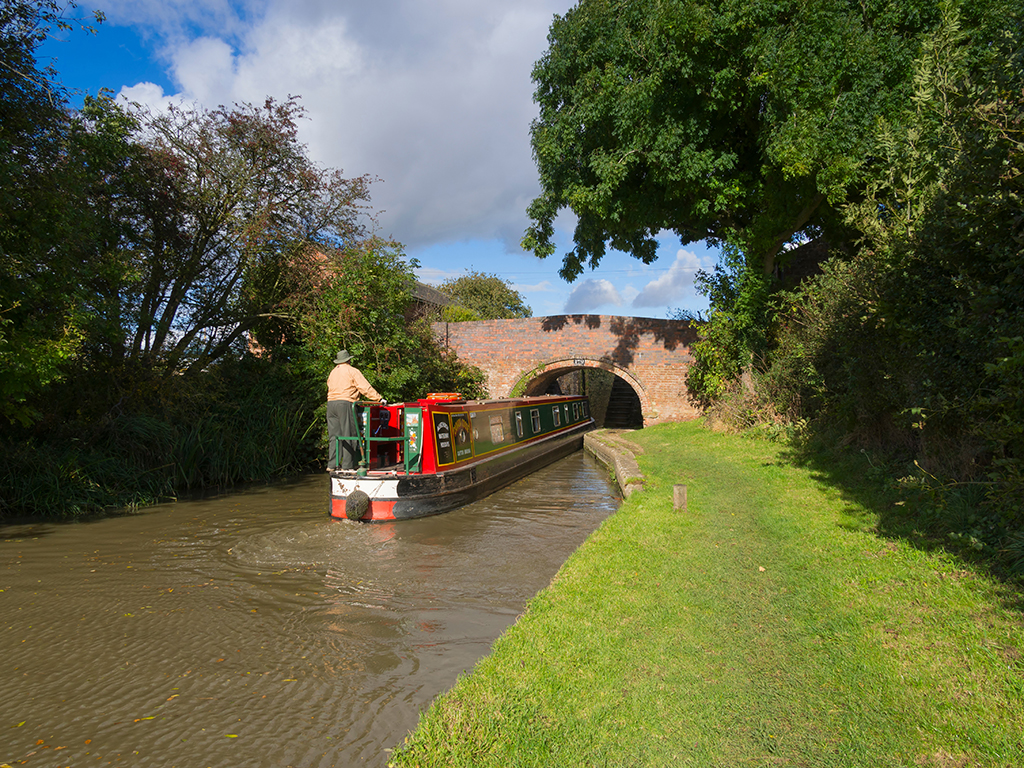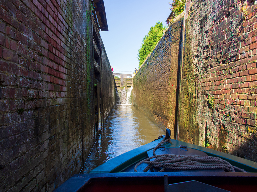 The next day we were all on board, and after a smooth passage through that first lock, we had just a few miles to go before arriving at Blisworth Tunnel. This is over 3000 feet long, the ninth-longest canal tunnel in the world. Construction began in 1793, but there were problems and an unfortunate collapse after three years of work. A new tunnel was started and finally opened in 1805. Until 1871, the only way to transit the tunnel was for boatmen to lie on their backs on top of their boats and push the boat with their feet. This was called “legging”. (And yes, this is the origin of the expression legging it!) Over time the tunnel deteriorated and became unnavigable, but in the 1980’s it was rebuilt, with some sections lined with pre-cast concrete rings. This rebuilding was used to test materials and techniques for the later building of the Channel Tunnel. We passed through the tunnel on this occasion without meeting an oncoming boat, although there is space for two boats to pass in the tunnel.
