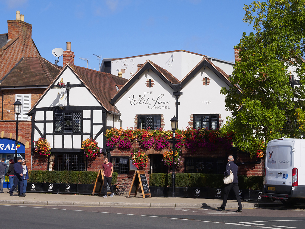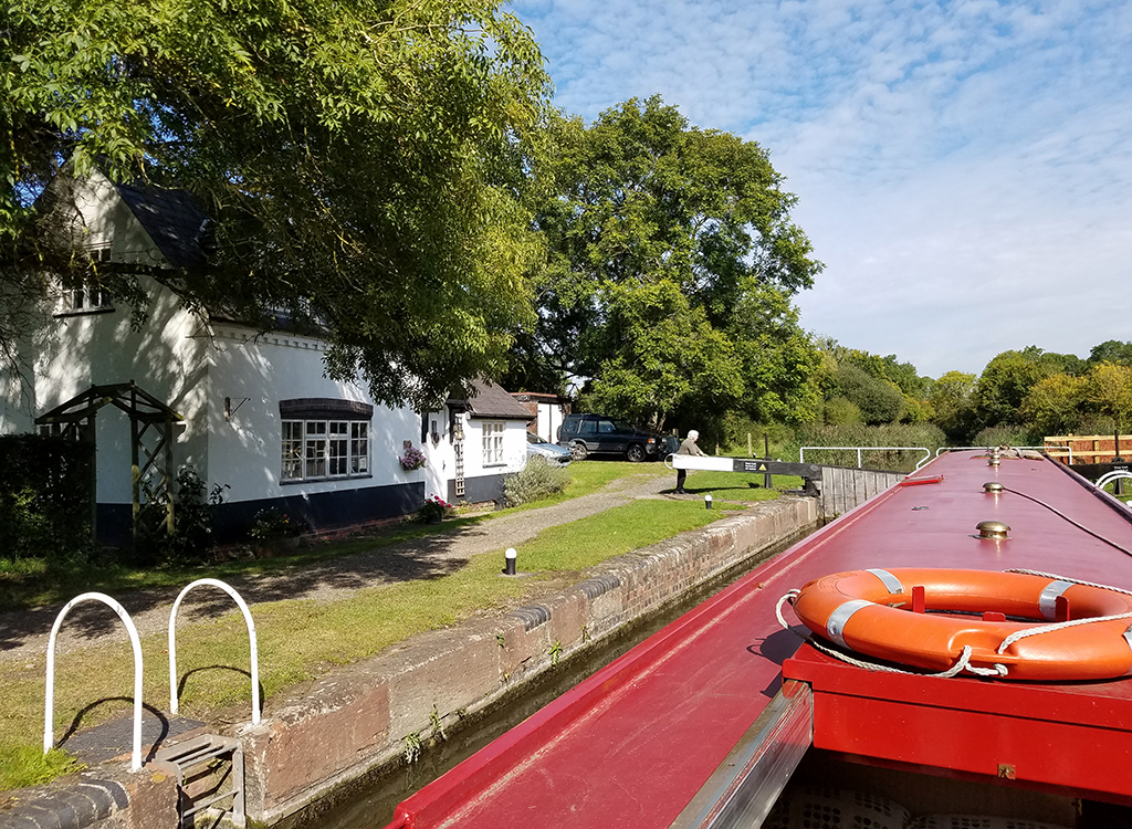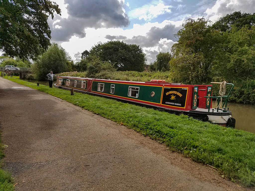 Lesley, an Australian friend who we knew in Kuala Lumpur had hoped to do a narrowboat trip for some years. Eventually we were able to put together a trip, with Lesley, Dick, and myself, and we were joined by Jeanne, a friend from Idaho. We decided to do the Avon Ring. This trip started south of Birmingham, and followed the Stratford-on-Avon canal to Stratford-on-Avon, then the Avon River until it meets the Severn River. You turn into the Severn, and follow it north to Worcester and then join the Worcester and Birmingham Canal to return to the starting point in Alvechurch. We chose our favourite Goose model, the perfect size for four of us. What we did not know, is that some of the locks on the canals in this area are slightly shorter than usual. Even the standard 72 feet leaves little space between the doors when you fit a 69-foot boat into the lock. On several occasions we had to push the bumper that protects the bow of the boat to one side to get the doors open.