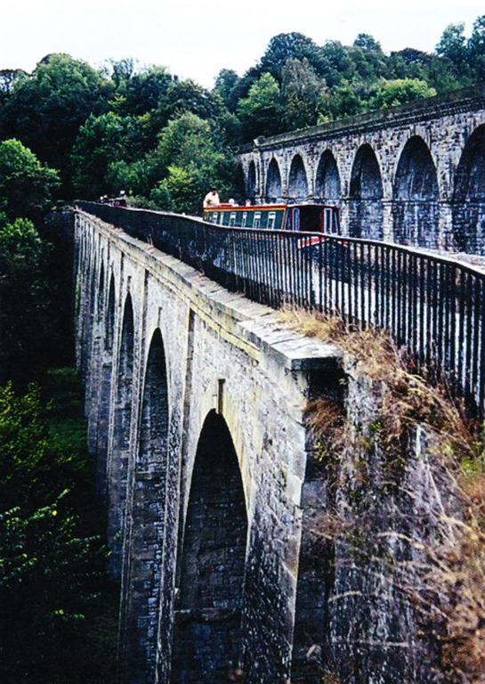 The highlight of the trip into Wales was the Pontcysyllte Aqueduct. From the Shropshire Union Canal, you turn into the Llangollen Canal and proceed northwest to the town of Llangollen. The aqueduct was completed in 1805. It is 12 feet wide, constructed of stone and cast iron, and is the highest canal aqueduct in the world. There is a towpath running along one side, giving brave souls an opportunity to enjoy the view of the river valley 127 feet below. The aqueduct was planned to be part of a major canal construction linking Liverpool with the Severn River, but after completion of the aqueduct the rest of the project was never finished.