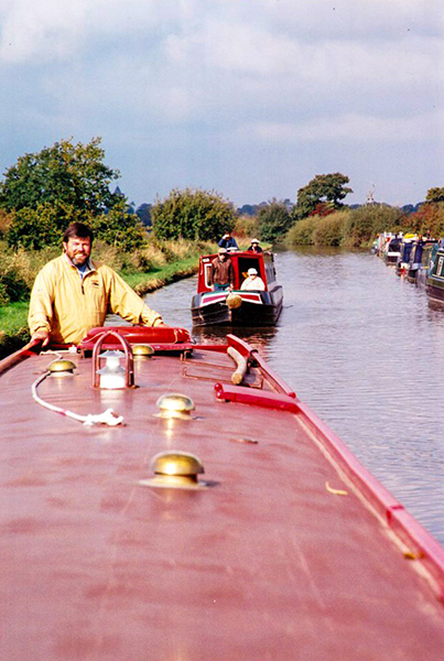 Unfortunately, it was not a happy pairing. Dad was not physically able to operate the locks, so we had assumed that he would do most of the driving. Unfortunately, George only wanted to drive and insisted that it should be shared equally. He was a poor driver, with no sense of how the boat handled, which made everything worse. When he was at the helm things tended to fall off shelves, and everyone on board had to hold on tight or be dumped onto the floor. The close quarters of a narrowboat proved to be rather too confined for all concerned, and instead of enjoying some happy evenings playing cards, they all retired to their respective rooms immediately after dinner. Dad told me that he could hear the laughter coming from our boat (as we played cards and pick-up sticks) and felt very envious!