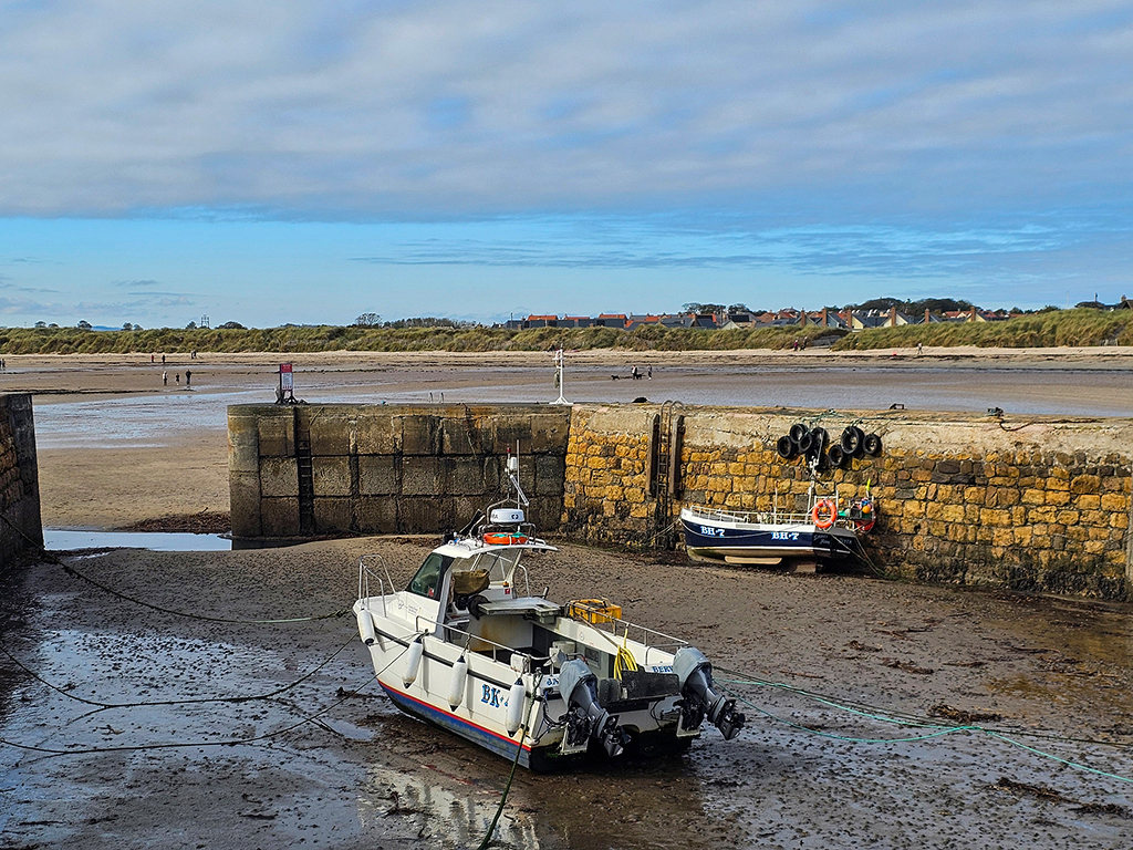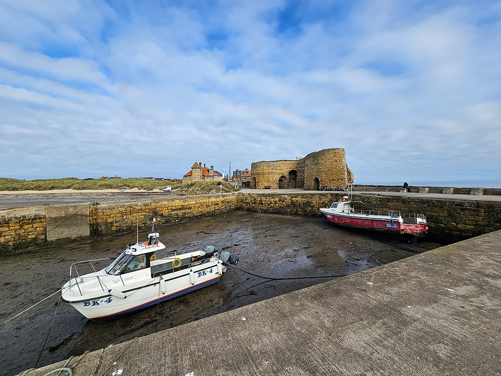 The medieval village of Beadnell was further north, but by the late 1700’s there was industry and trade in the area and a protected harbour was built, the only west-facing harbour in this part of the coast.  Previously, fishing boats and traders had to be drawn up on the beaches.  Lime and grain traders used the harbour in its early years, and there were several fishing boats on the sand at low tide when I walked around.