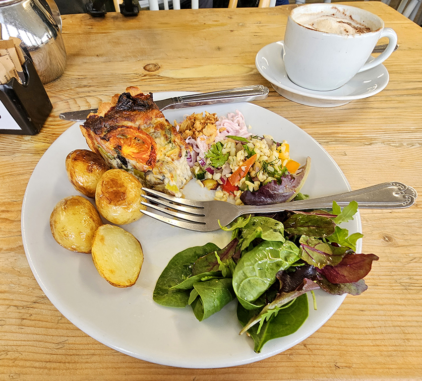 We enjoyed walking around the harbour and the views from the promontory, and then we descended into the village in search of a tearoom.  Naturally, all the other visitors to the island had the same thought, but we managed to get in just ahead of the rush to a well-regarded eatery.  The offerings seemed somewhat strange, but Rosemary tried what purported to be a cheese scone, while I tried a slice of vegan coffee cake.  Both were extremely odd.  The cheese scone was a rather violent orange, that I suspect owed more to an excess of turmeric than actual cheddar content.  The coffee cake had substituted a great deal of sugar for any fat or dairy content, and only copious applications of butter (fortunately normal, salted, butter from Cumbria) made it remotely edible.  The coffees were decent.