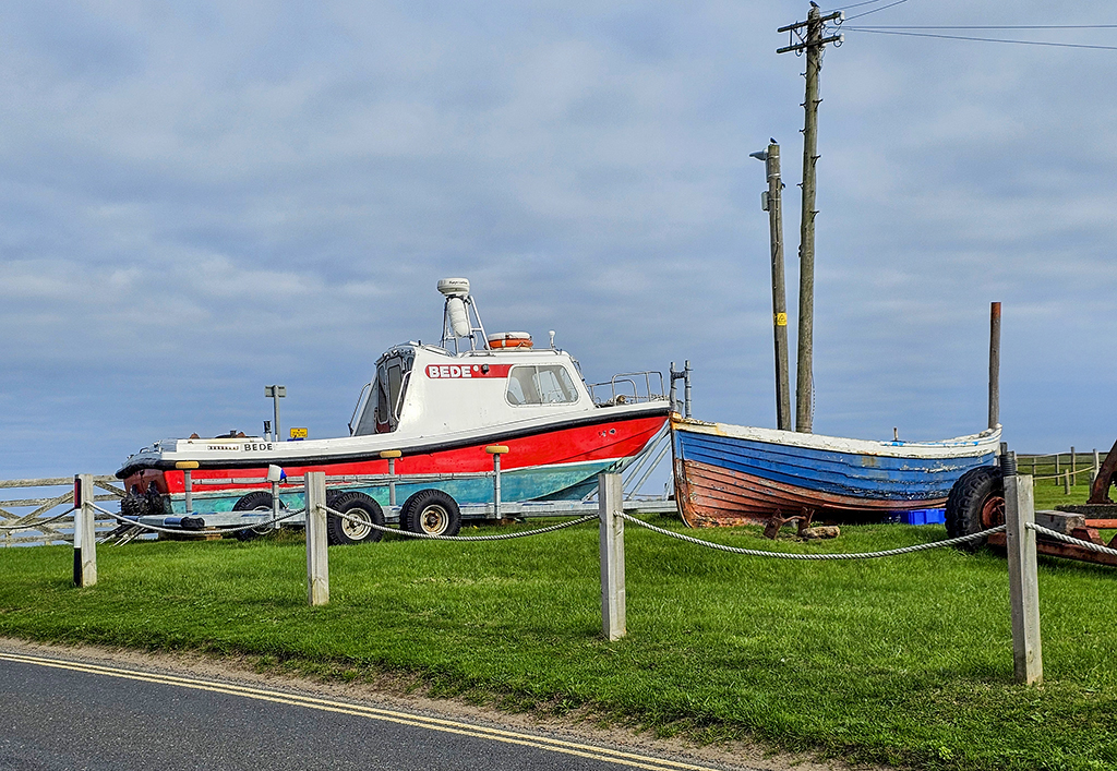 Lindisfarne is very much a working harbour.  There are plenty of fishing boats, workshops, and boats out of the water for repair or restoration.  An interesting feature is a few large former fishing boats that have been turned over, set on a concrete base, sealed, and fitted with doors to create storage sheds.  There is a suggestion that the practice dates back to the Vikings, who may have used upturned boats as temporary dwellings.