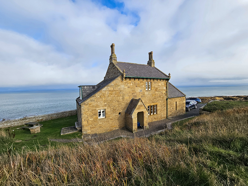 An interesting bench looking out to sea. The lighthouse is just to the north, and in the far distance you can see Lindisfarne Castle.