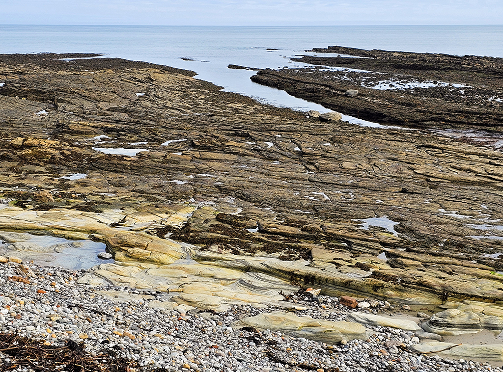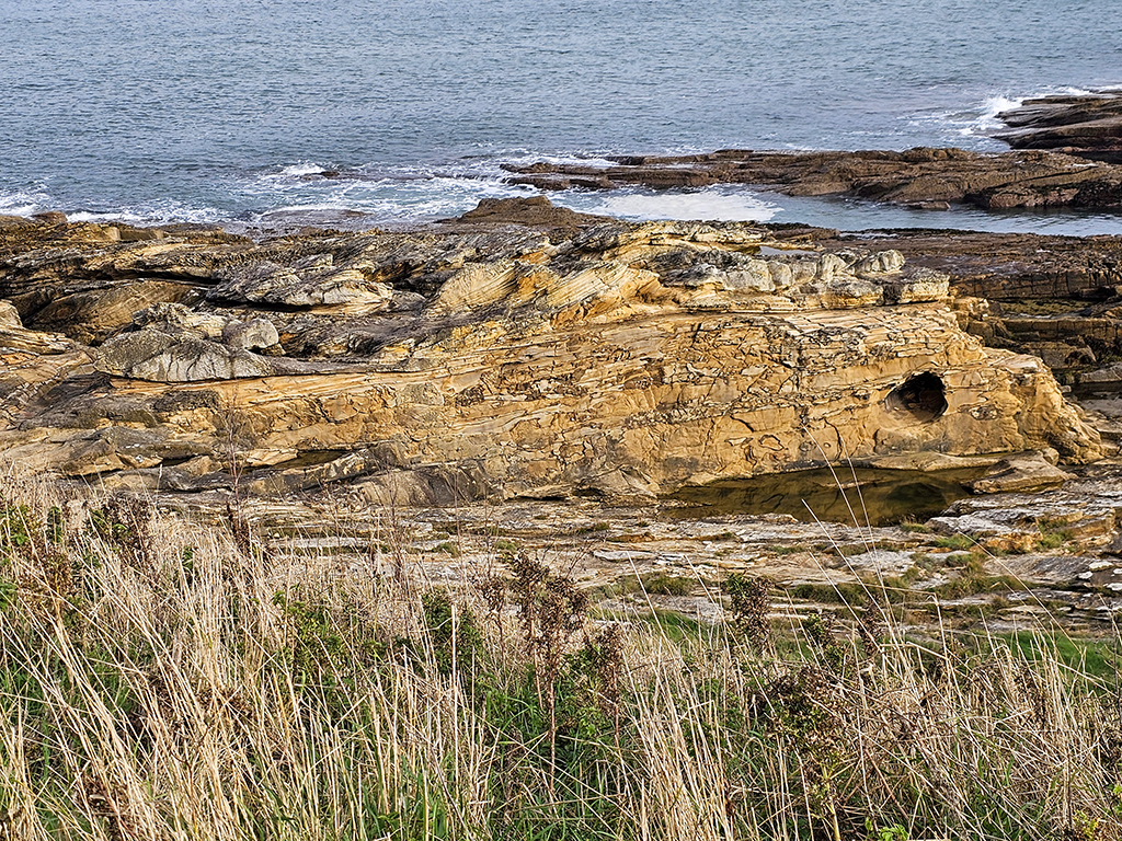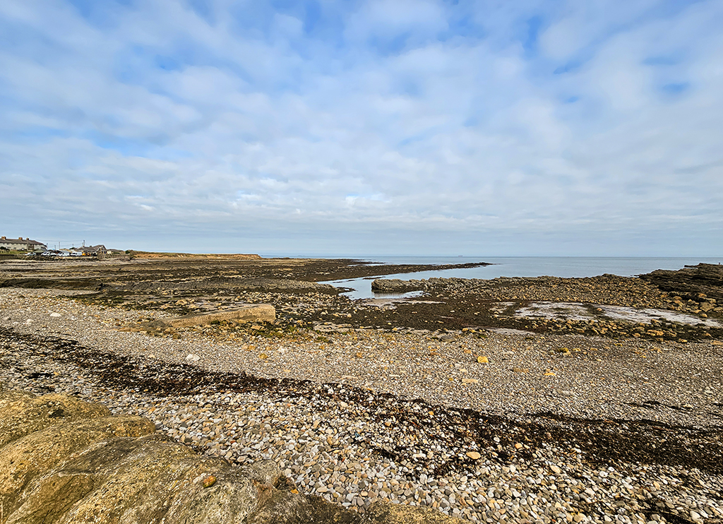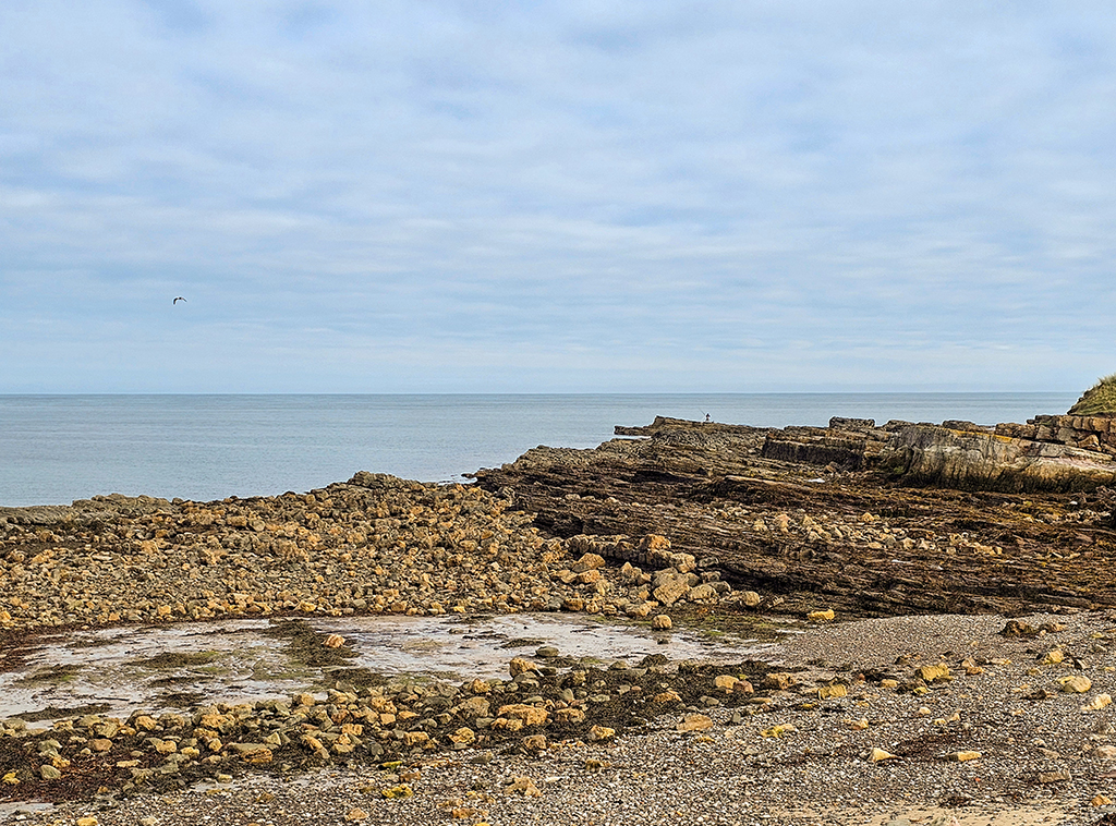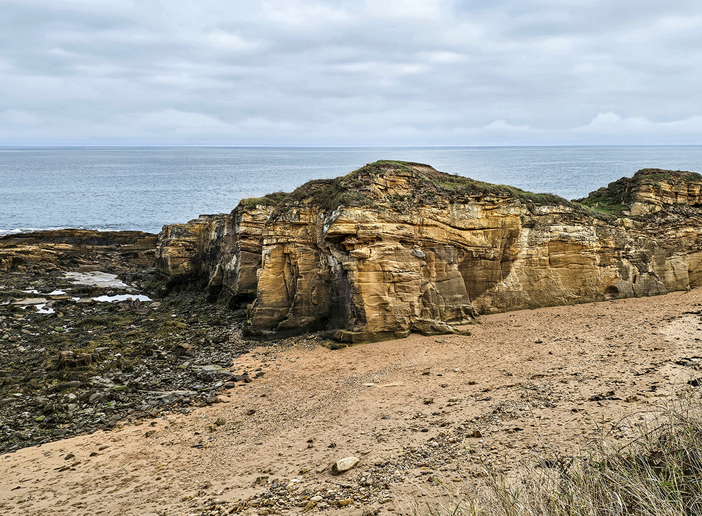 Most of the eastern shore of Northumberland is part of the Great Whin Sill.  This is a broad, flat layer of igneous dolerite (sub volcanic) rock that stretches across the northern part of England between the North Sea in Northumberland, and the North Pennines.  Much of it is in the form of high cliffs, and these cliffs were ideal for fortifications and defence.  The Romans certainly recognized the defensive capabilities of a natural rampart for keeping out the unfriendly Picts when they built Hadrian’s Wall.  Not to mention the effectiveness of having limited access in both directions for travellers and particularly traders, allowing taxes to be collected.  Later conquerors took advantage of the high cliffs of the Whin Sill in Northumberland to build castles that commanded the landscape for many miles.  Bamburgh, Dunstanburgh, and Lindisfarne all took advantage of the high vantage points.  In the Beadnell part of the coastline, the Whin Sill is lower, and is in the form of long fingers that reach out into the sea.  Barrier islands are also present, The Farne Islands broke off from the mainland and formed an archipelago offshore.
