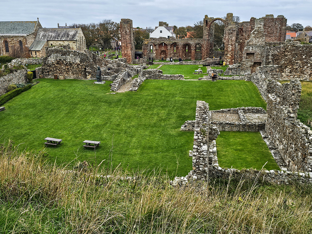 Parking near the village, in very typical British fashion, isn’t near.  It is also about double the cost of most Northumberland County car parks elsewhere, for the privilege of parking in a muddy field.  It is about 300 yards to the village, and then quite a bit further if you want to visit the castle.  Rosemary and I were more interested in the photography opportunities at the harbour, the priory ruins, and the various village attractions, so we didn’t bother joining all the people trekking to the castle.