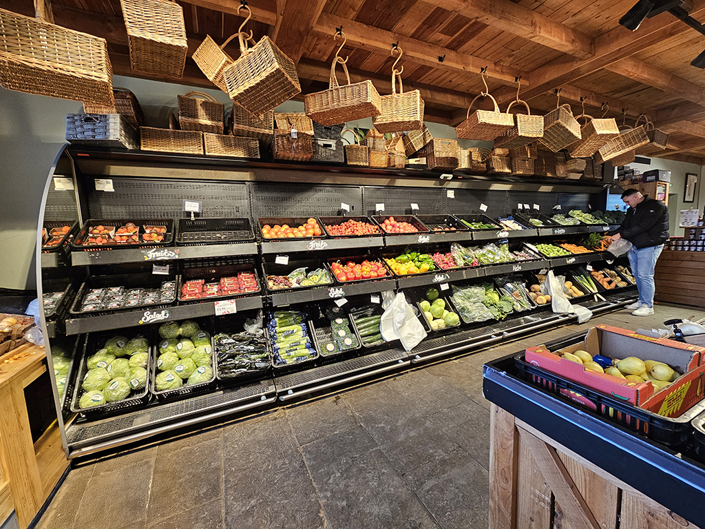 My next stop was far more successful.  We have visited the Mainsgill Farm Shop on several occasions, and it just goes from strength to strength.  As I arrived, I experienced a “huh???” moment, as I saw two camels and another not very English herbivore grazing in the field.  After parking, I investigated the open sheds, where last year Dick and I had admired some cattle waiting for milking.  Now these sheds have been devoted to goats, pigs, Shetland ponies, and Alpaca.