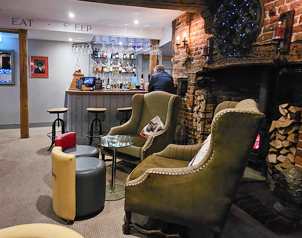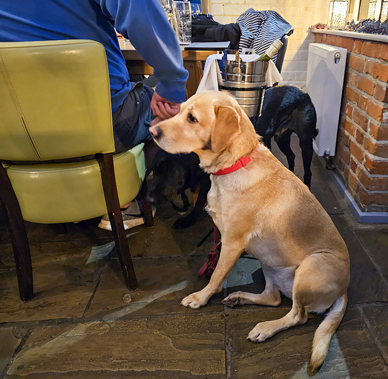 After our coastal excursion, we were happy to return to The Dog at Wingham, a gastropub that we had enjoyed on our previous visit. The food was outstanding. I was feeling adventurous, and tried whipped smoked cod’s roe with sourdough crackers and caviar. It was delicious. Dick enjoyed a starter of mussels in a cream sauce. He had been looking forward to the fillet of venison, and it was as good as expected. I ordered a small portion of braised beef with tagliatelle. Dick’s quite spectacular dessert was mulled pear rice pudding brulee. He was a bit dubious, thinking that the chef perhaps couldn’t decide what he was making, but once he tried it, he reported that it was as delicious as it was impressive looking. My sticky toffee pudding was also very good. We enjoyed seeing the dogs, two well-behaved labs at the table next to us, and a beautiful Gordon Setter in the next room. We were surprised that there were so few dogs that evening, last time there was one at nearly every table.