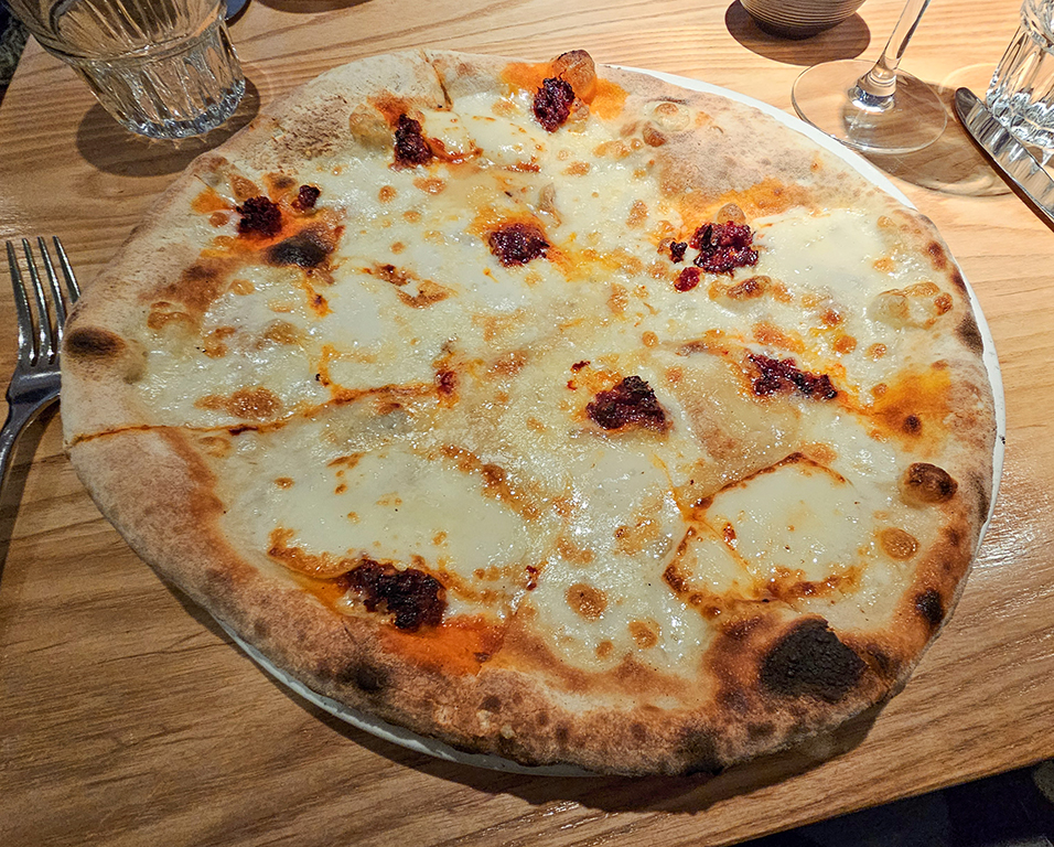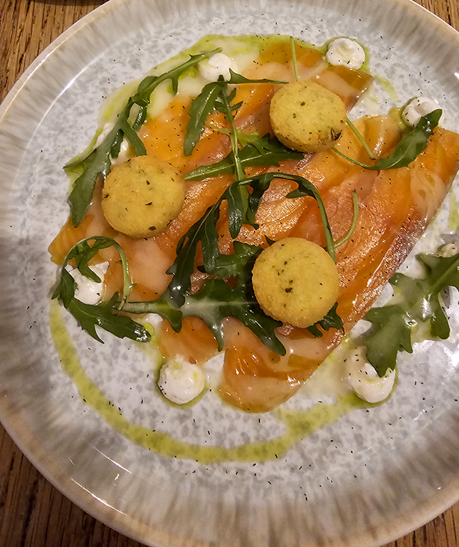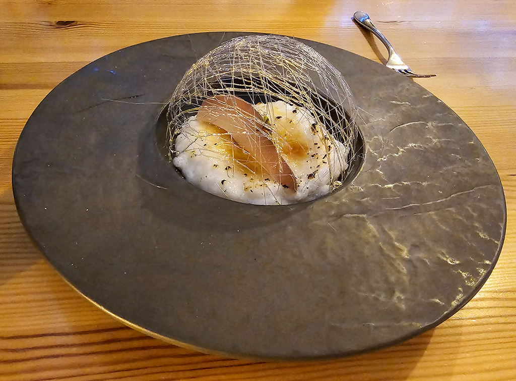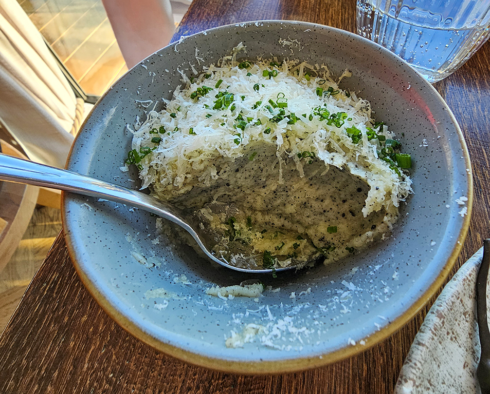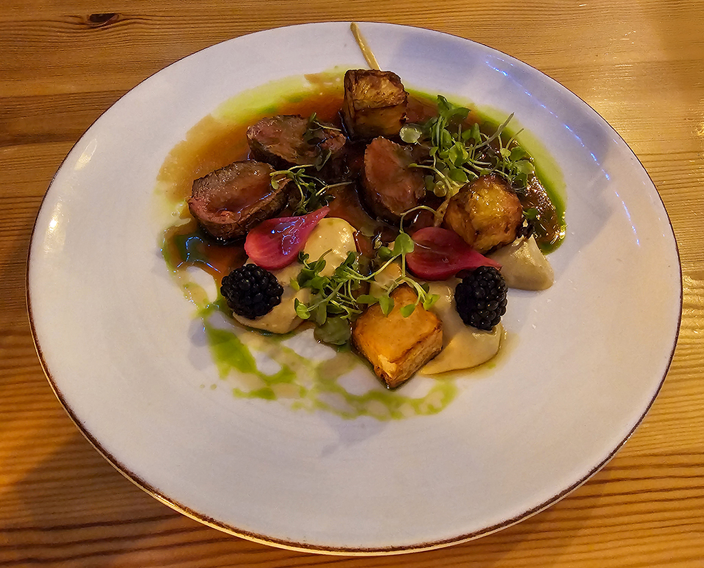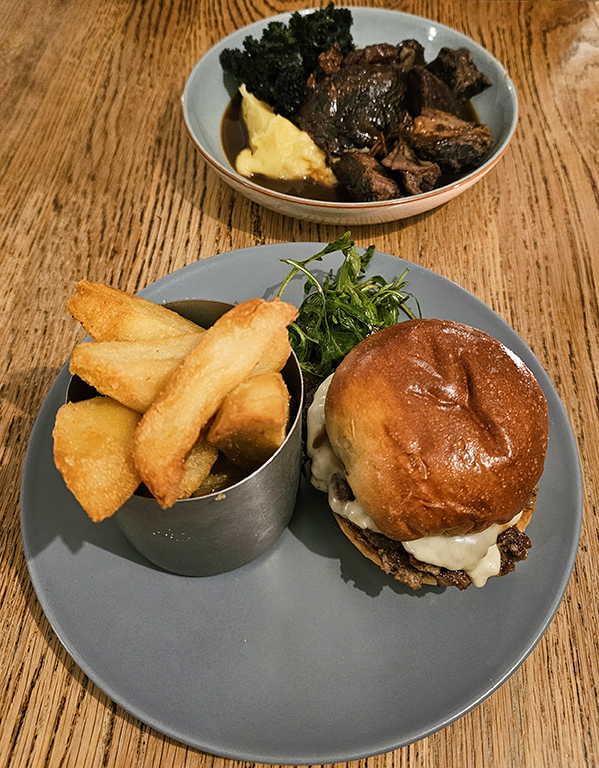 Our reservation for the evening was at The Duck at Pettbottom. It is tucked away in the middle of nowhere, down several single lane roads and quite tricky to find. Ian Fleming wrote “You Only Live Twice” at this pub in 1964, featuring it in his story with its former name, The Woodman’s Arms. It is a popular restaurant, previously listed in Michelin Guide. It closed the year after we visited the first time, but reopened in 2024 under new ownership. The new owner/chef greeted us after our meal and asked if we had enjoyed it. We found it very pleasant, but while the starters were quite interesting, the main courses were more along the lines of excellent pub food than what I would expect from a gastropub.