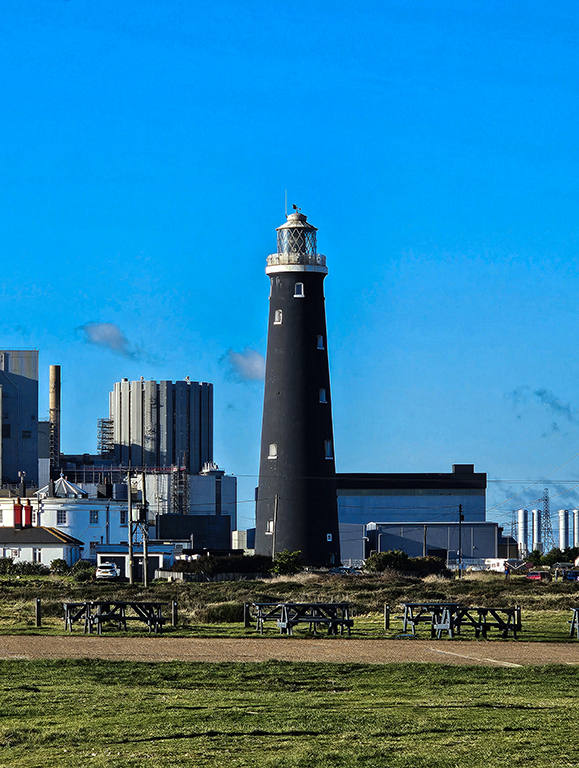 There are two lighthouses currently standing on the headland. The older one, a solid black tower, was built in 1904 to replace an older structure. It is no longer in use but is open as a visitor attraction. Dungeness Lighthouse is the newest structure, beginning operation in 1961 and still in use today. It was needed because the power station obscured the light from the older tower. It was the first major new lighthouse to have been built in Britain in 50 years. The tower is floodlit at night, as an aid to visual navigation and to reduce mortality rates of migrating birds, which were flying into it at night. An electronic signal at the base of the tower sounds a fog signal of one blast every 30 seconds.