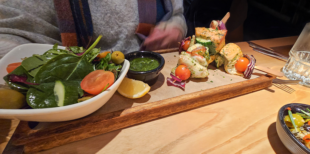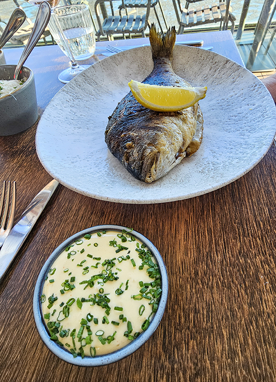 Our lunch at Rocksalt was excellent. It was a glorious day, and we were happy to have a window table. We enjoyed watching the tide recede and people walking their dogs on the sands.