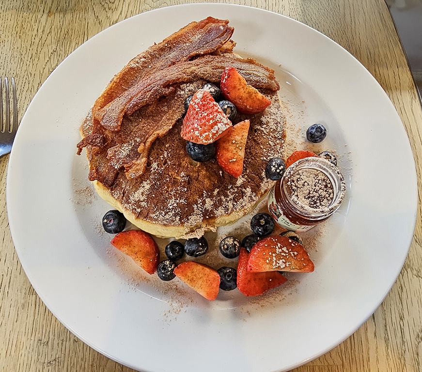 Although clean and recently renovated, the villas have very inadequate kitchens, so we decided that we would not be doing any cooking, not even Dick’s signature weekend breakfast. Instead, we chose to visit Gibson’s Farm Shop, who have opened a restaurant and serve breakfast. We loved the farm shop on our last visit, in fact it set a very high bar for all other farm shops we visit on our travels! Breakfast was very good, and we enjoyed browsing the offerings in the shop. Of course we picked up a few interesting foodie items.