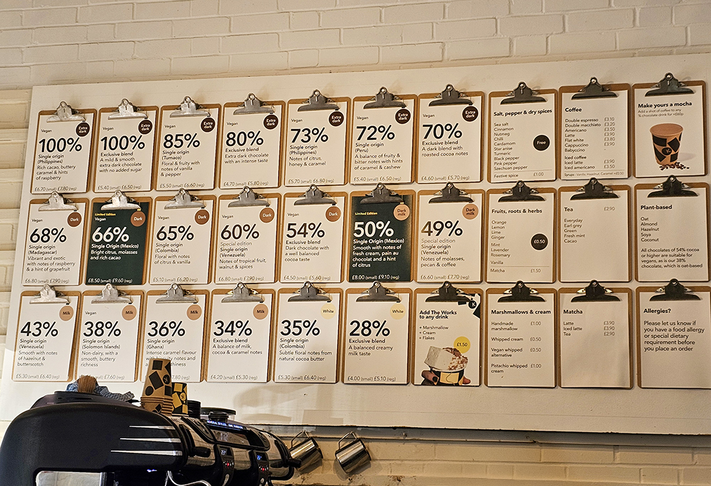 The Landgate dates from 1329. We walked up from the car park and just in front of the only remaining one of four gates in the town, we discovered Knoops Chocolate Café. Feeling quite ready for a pause, we went in and were amazed at the variety of hot chocolate on offer. All are single origin chocolates, and with varying percentages of cocoa. You can have it made with non-dairy milk, so I decided to take the plunge and try it with oat milk. (most dairy products do not bother me, but I cannot drink milk). The drink was absolutely delicious, and I see that you can order Knoops chocolate flakes online, so I will certainly investigate that option.