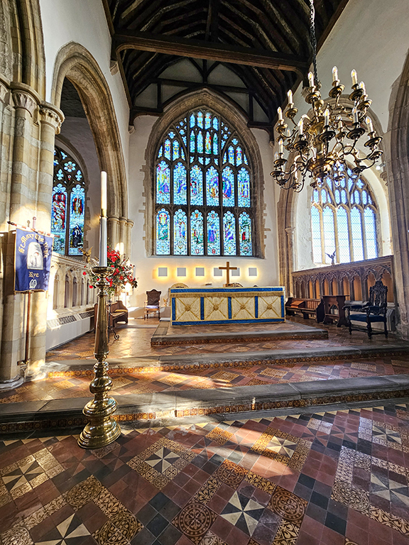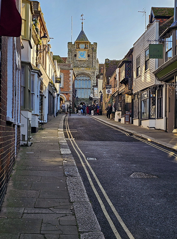 Refreshed, we set off to explore the historic town centre, walking the length of High Street, and The Mint, with a detour up Lion Street. We went into St Mary’s Church, affectionately known until recently as the Cathedral of East Sussex. Construction began in 1150, but there have been many changes in the years since. The New Clock, one of the oldest church turret clocks that still works, was installed in 1561. There are some beautiful stained-glass windows that are mostly Victorian.
