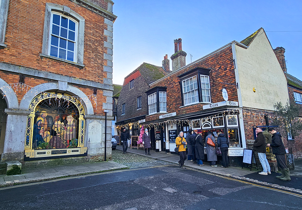 Nearby is the house of playwright John Fletcher, who was as famous during his time as William Shakeapeare. He collaborated with Shakespeare on the writing of Henry VIII and other plays. The house was originally the vicarage for St Mary’s Church, where Fletcher’s father was the vicar. Today it is a successful restaurant. Next door is Simon the Pieman, established in 1920, and claiming to be the oldest tearoom in Rye. Dick was wondering whether to investigate the pies, but expectation of an excellent dinner that evening persuaded him that it would not be a good idea.